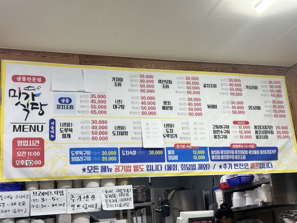 도루묵, 양미리 구이는 6월 기준 현재는 안된다고 하셨다.
