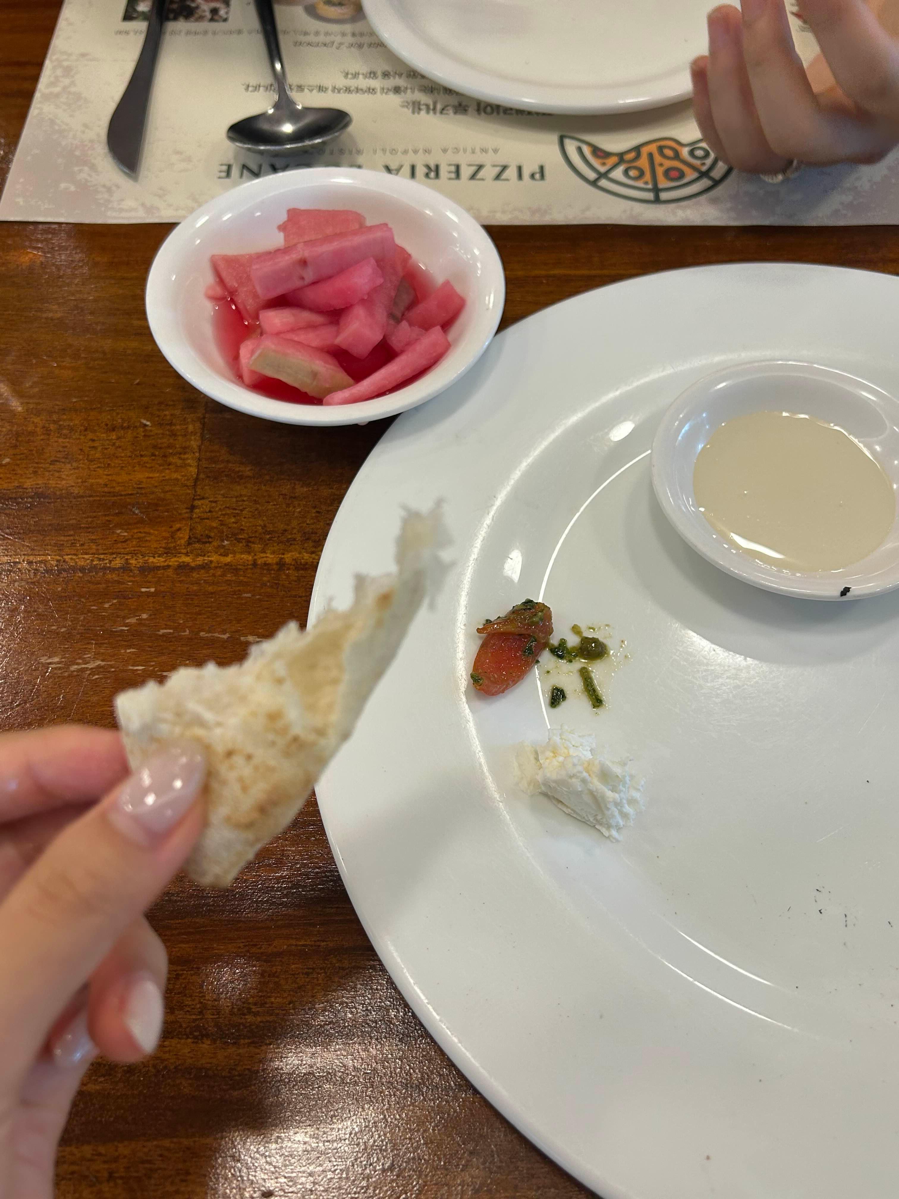 보통 배부르면 피자 빵 부분은 남기게되는데, 이 식당에서는 오히려 빵부분을 먹게되었다.