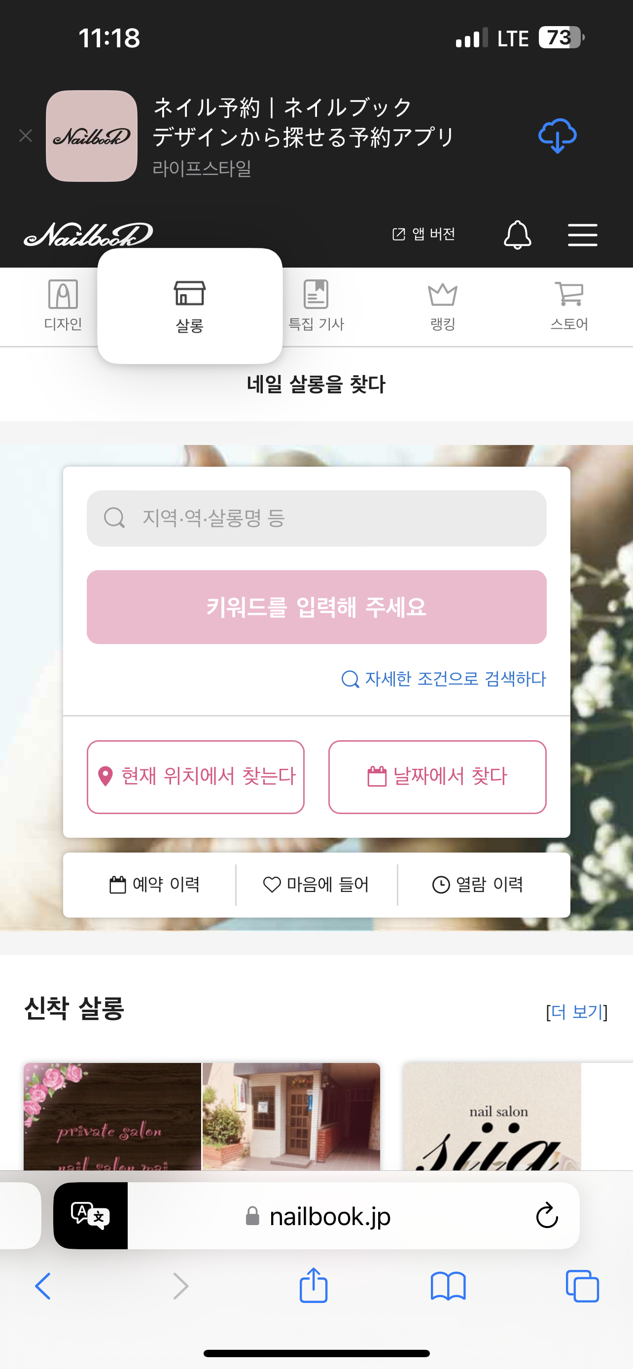 이런식으로 네일디자인도 볼 수 있고, 다양한 샵을 예약할 수 있다!