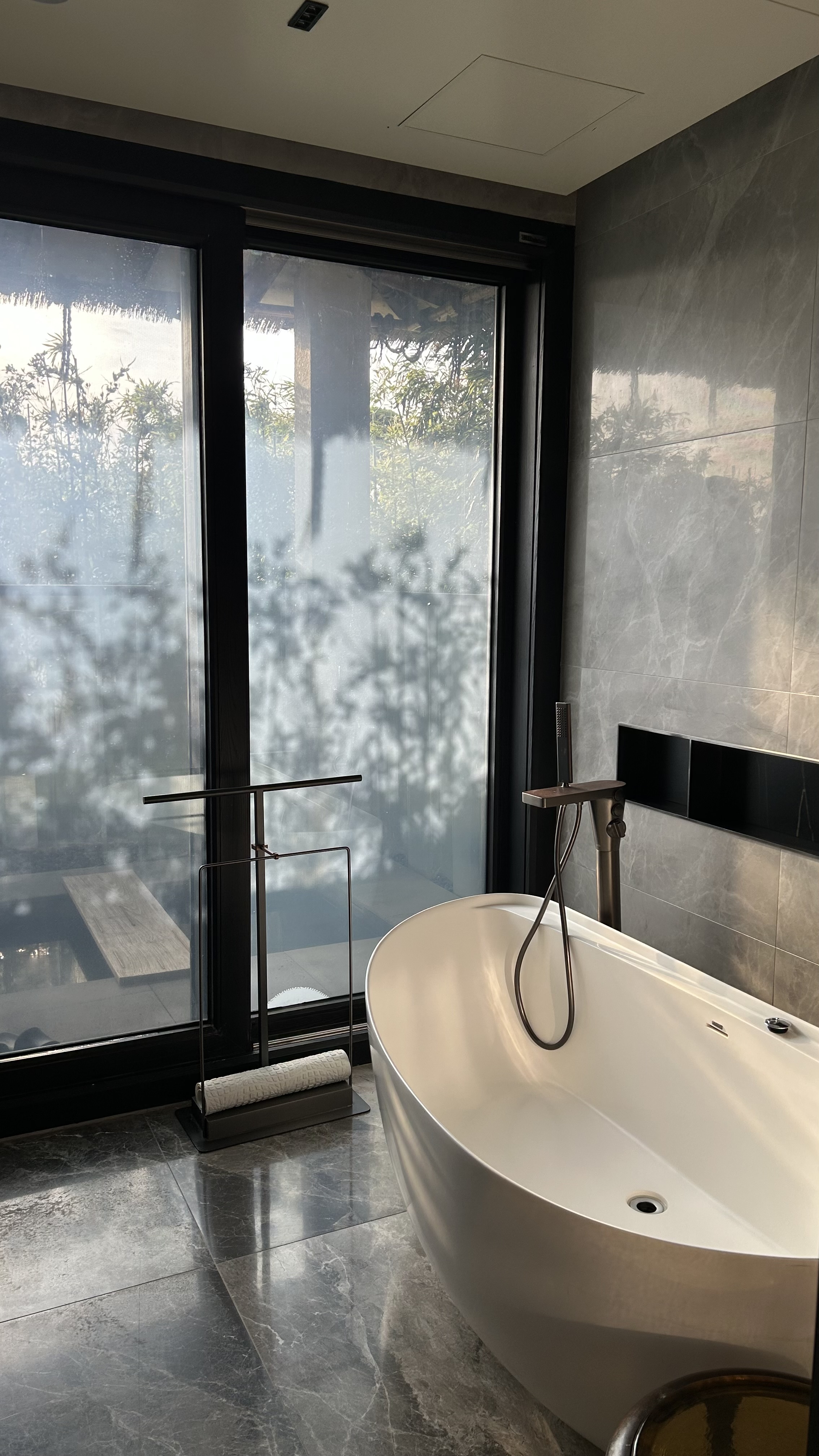 밖의 자쿠지 때문에 안의 욕조는 쓸 일이 없었다. 배쓰밤부터 배쓰솔트까지 모두 준비되어 있음