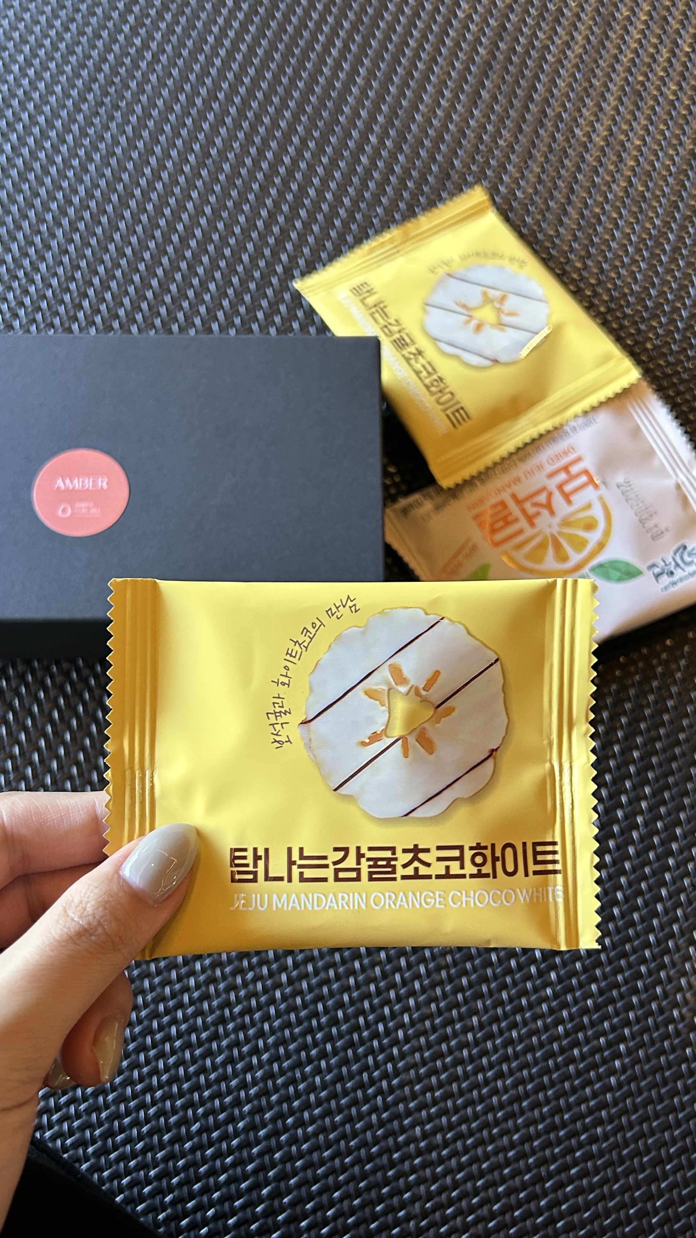 처음 들어오면 웰컴 기프트로 감귤초코를 주신다.